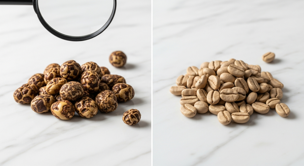 Learn the specific differences between authentic and counterfeit Kopi Luwak. Discover physical characteristics, taste tests, and verification methods to identify genuine coffee and protect yourself from fraud.